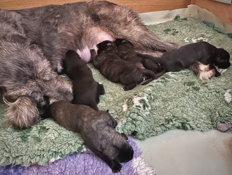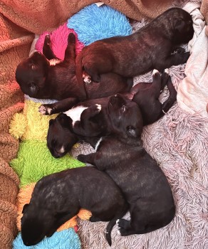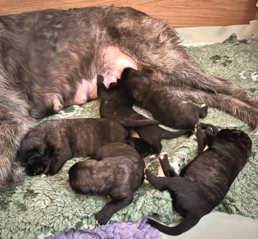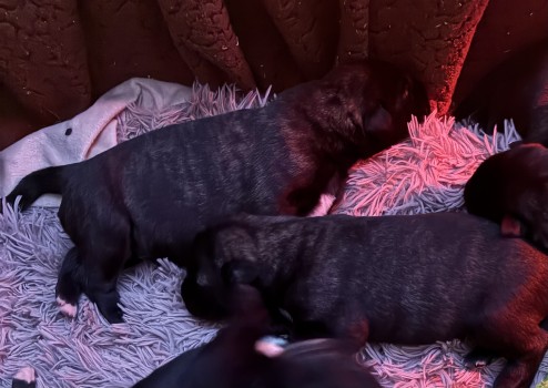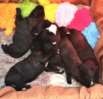 nás Merida obdarovala pěti nádhernými štěňátky (2 kluci/3 holky). Všichni jsou tmavě žíhaní, jako maminka. Jsou nádherní! Merida gave us five beautiful puppies (2/3). They are all dark brindle, like their mother. They are beautiful!